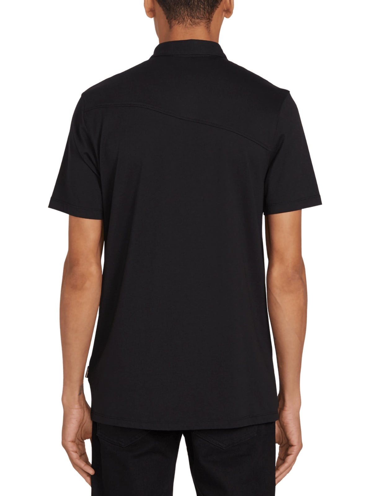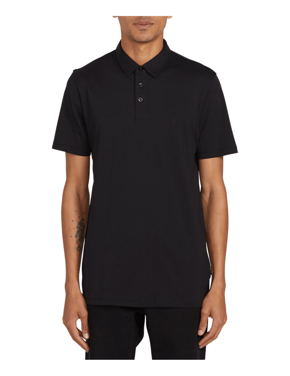 Das Volcom Wowzer Poloshirt in moderner Passform mit kurzen Ärmeln in Schwarz verfügt über eine asymmetrische Passe. Das Branding umfasst Volcom-Markenknöpfe und ein gesticktes Volcom-Logo. Hergestellt aus 60 % Baumwolle und 40 % Polyester.