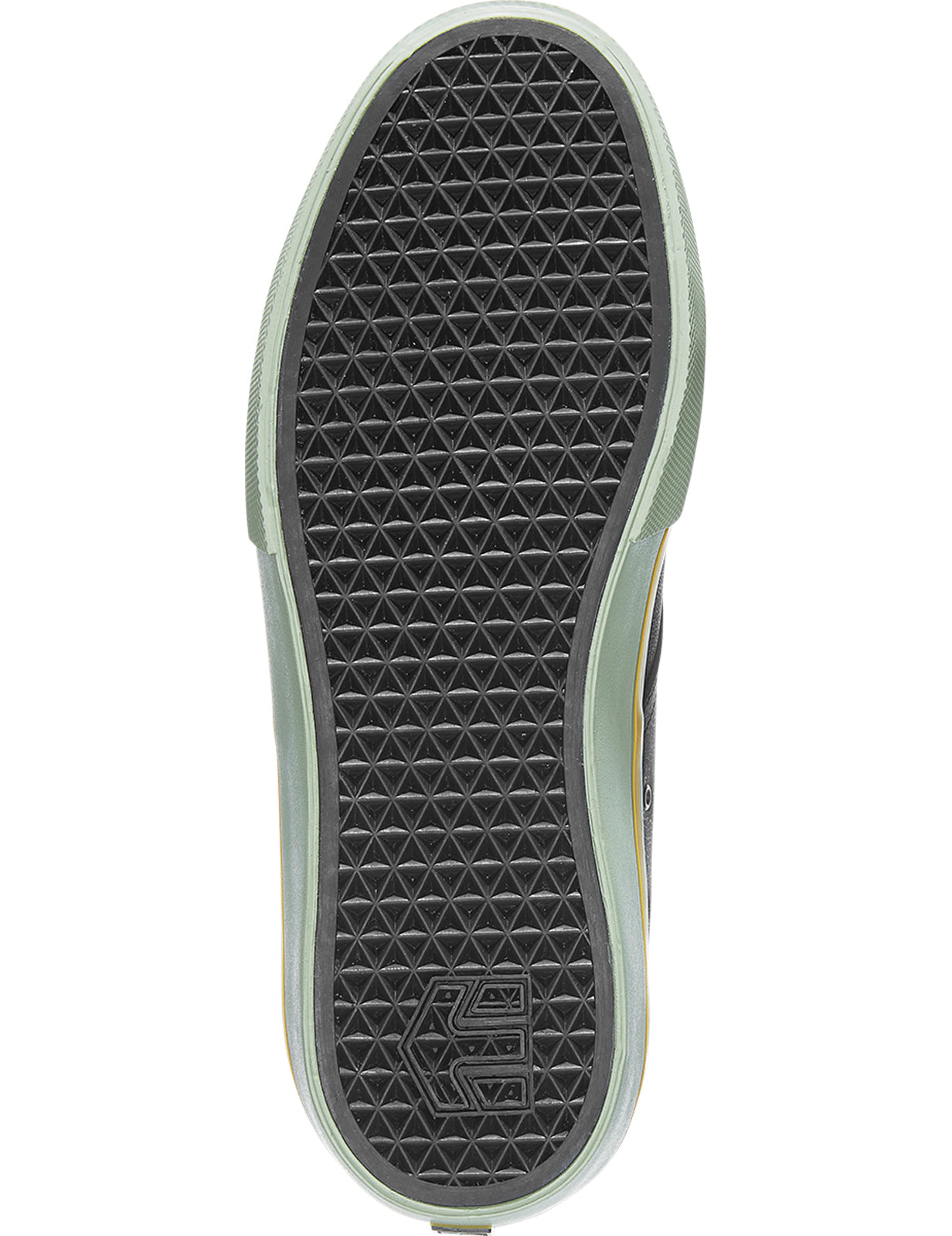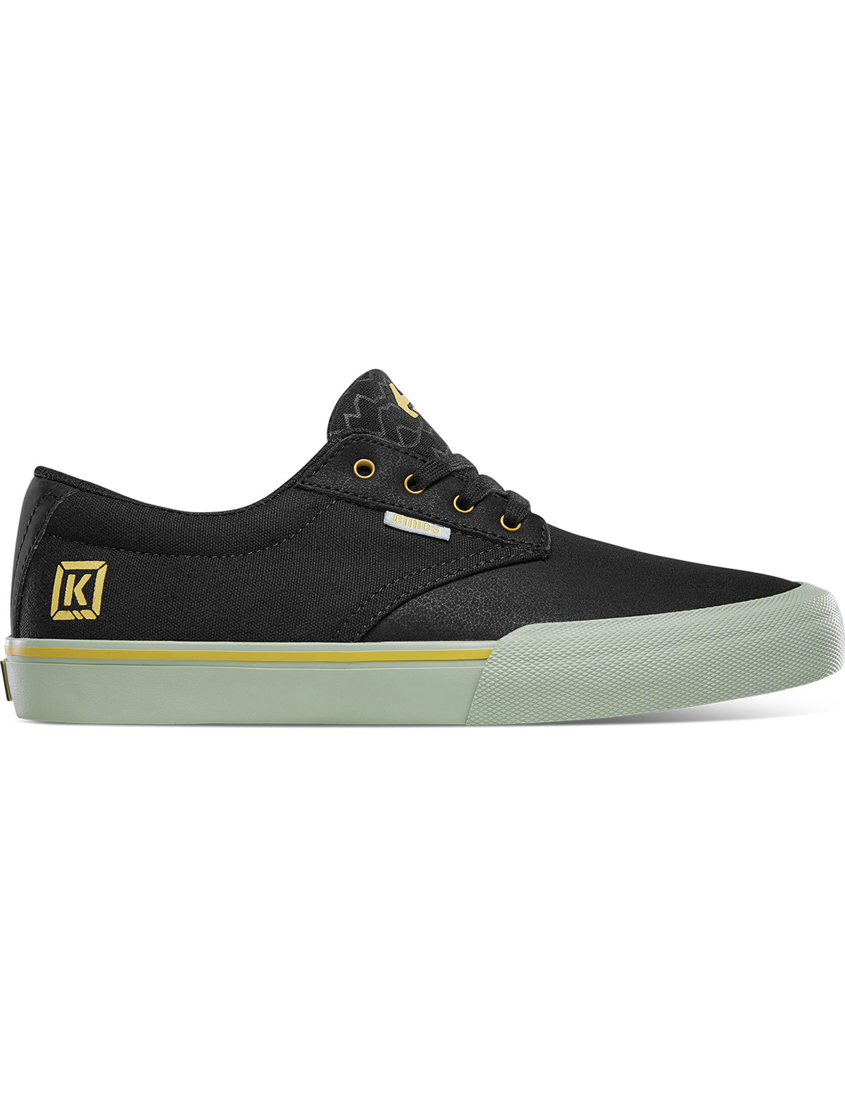 Baskets BMX Etnies Jameson Vulc noires avec semelle intermédiaire Etnies Egg crate et semelle intérieure Foam Lite. Le marquage comprend une étiquette tissée Etnies. Fabriquées en daim, toile et caoutchouc.