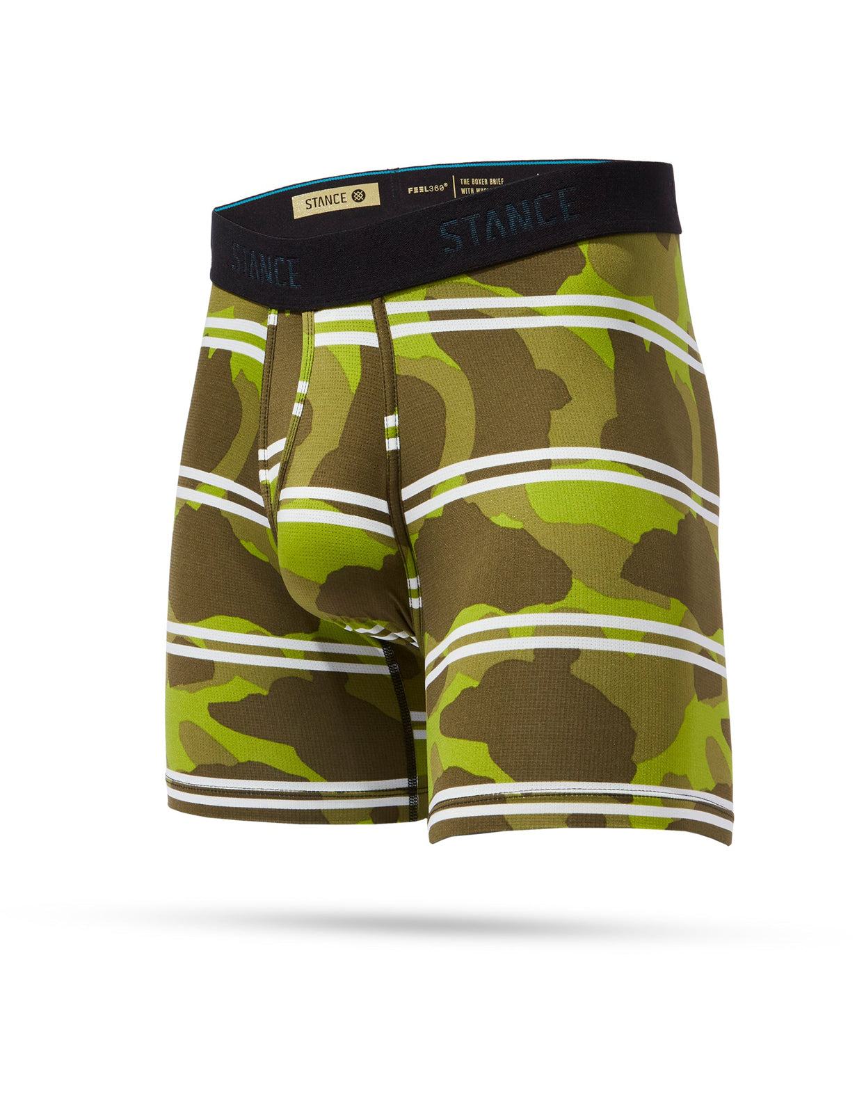 Stance Abrams wholester boxers in green features Stance Core-Flex and Feather-Seam as well as Feel360 technology, Wholester style boxer brief. Also features a Stance label and 6 inch inseam as well as boxer brief style. Made from 15% elastane, 85% nylon.