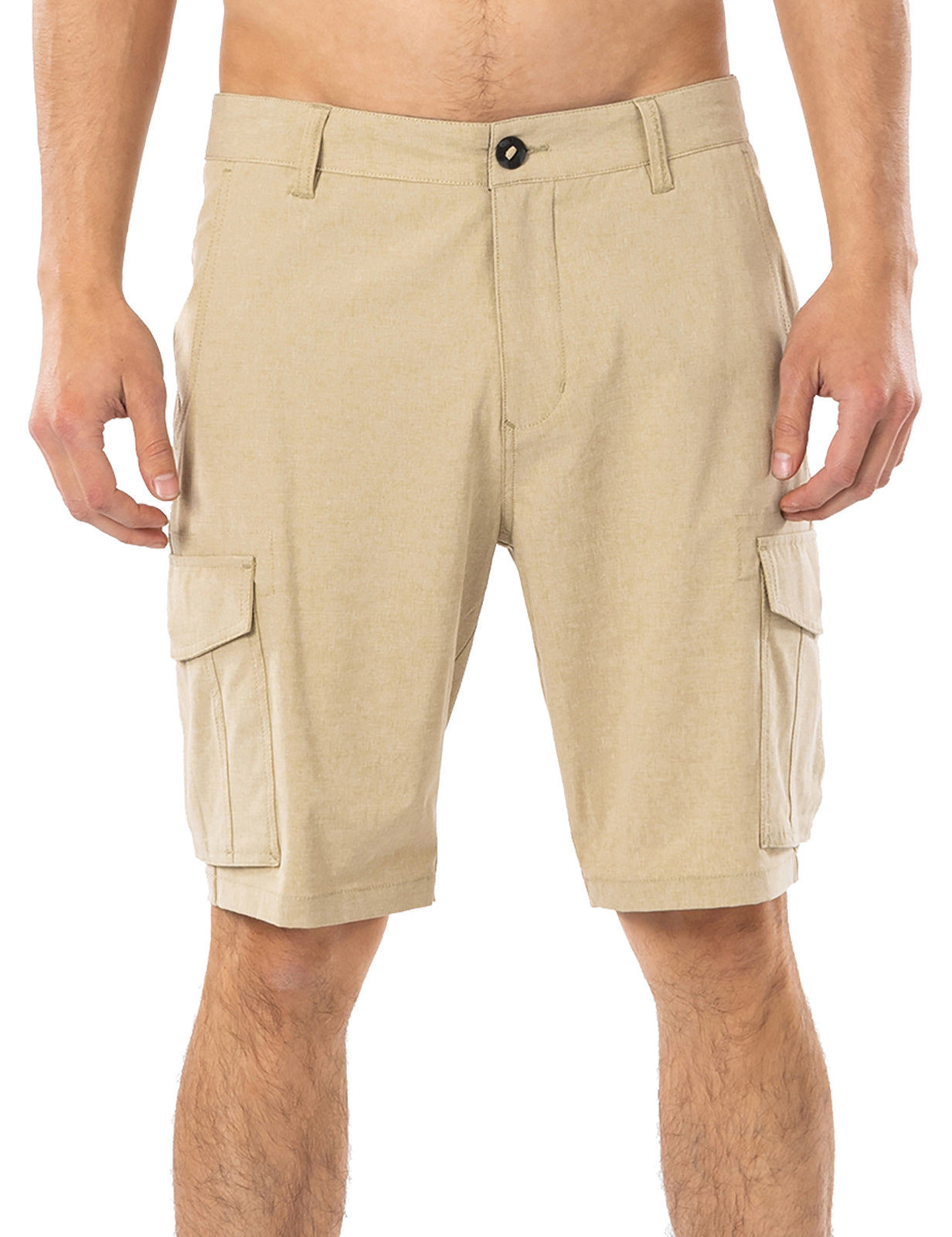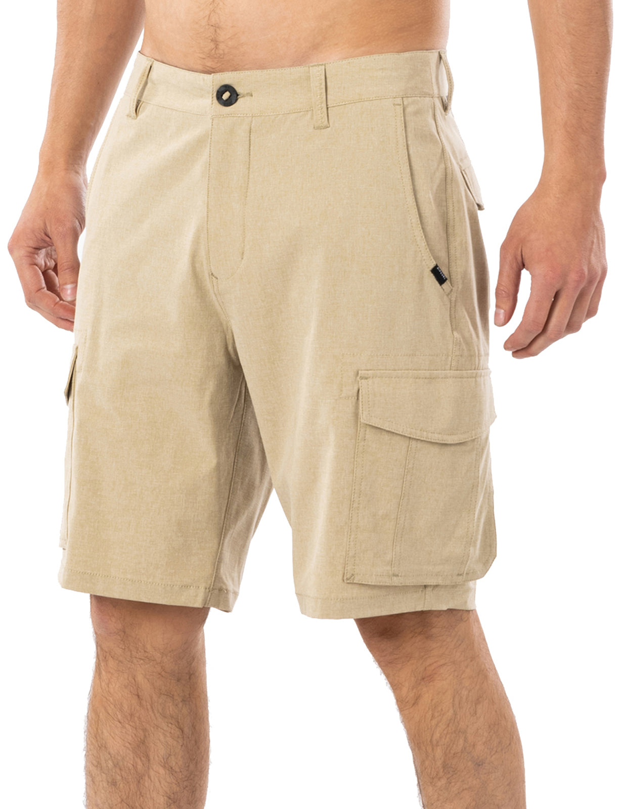 Rip Curl Boardwalk Trail Cargo amphibian shorts in dark khaki for men. Made from 6% cotton, 22% elastane, 10% polyamide, 62% polyester.