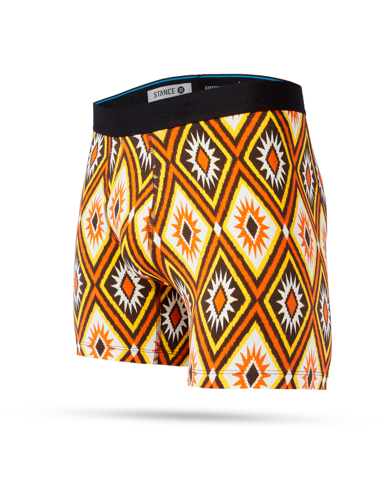 Stance Cabin Fever boxer briefs in orange features Stance Core-Flex and Feather-Seam. Also features a boxer brief style and 6 inch inseam. Branding includes a Stance woven label. Made from 91% cotton and 9% elastane.