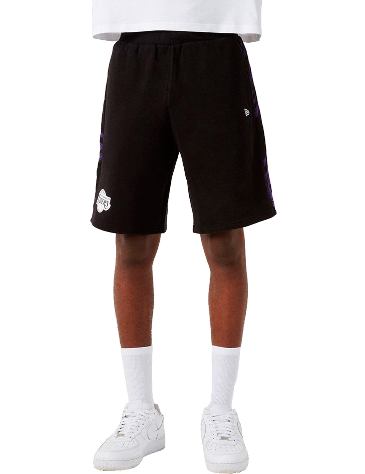 New Era Los Angeles Lakers NBA Print Panel Track Shorts in Black