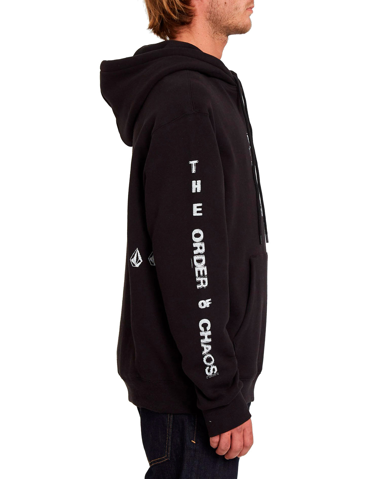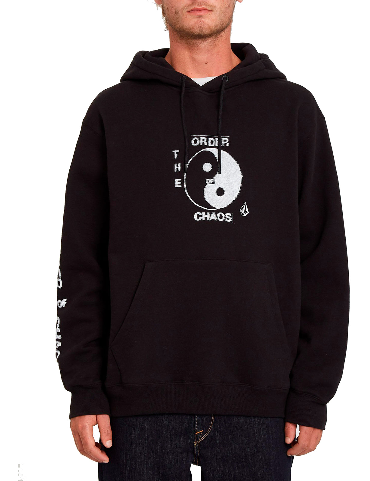 Volcom Transient Waves regular fit pullover hoody in black features a adjustable drawstring hood and chest print as well as kangaroo pouch, rear print and sleeve print. Branding includes a Volcom embroidered logo. Made from 80% cotton and 20% polyester