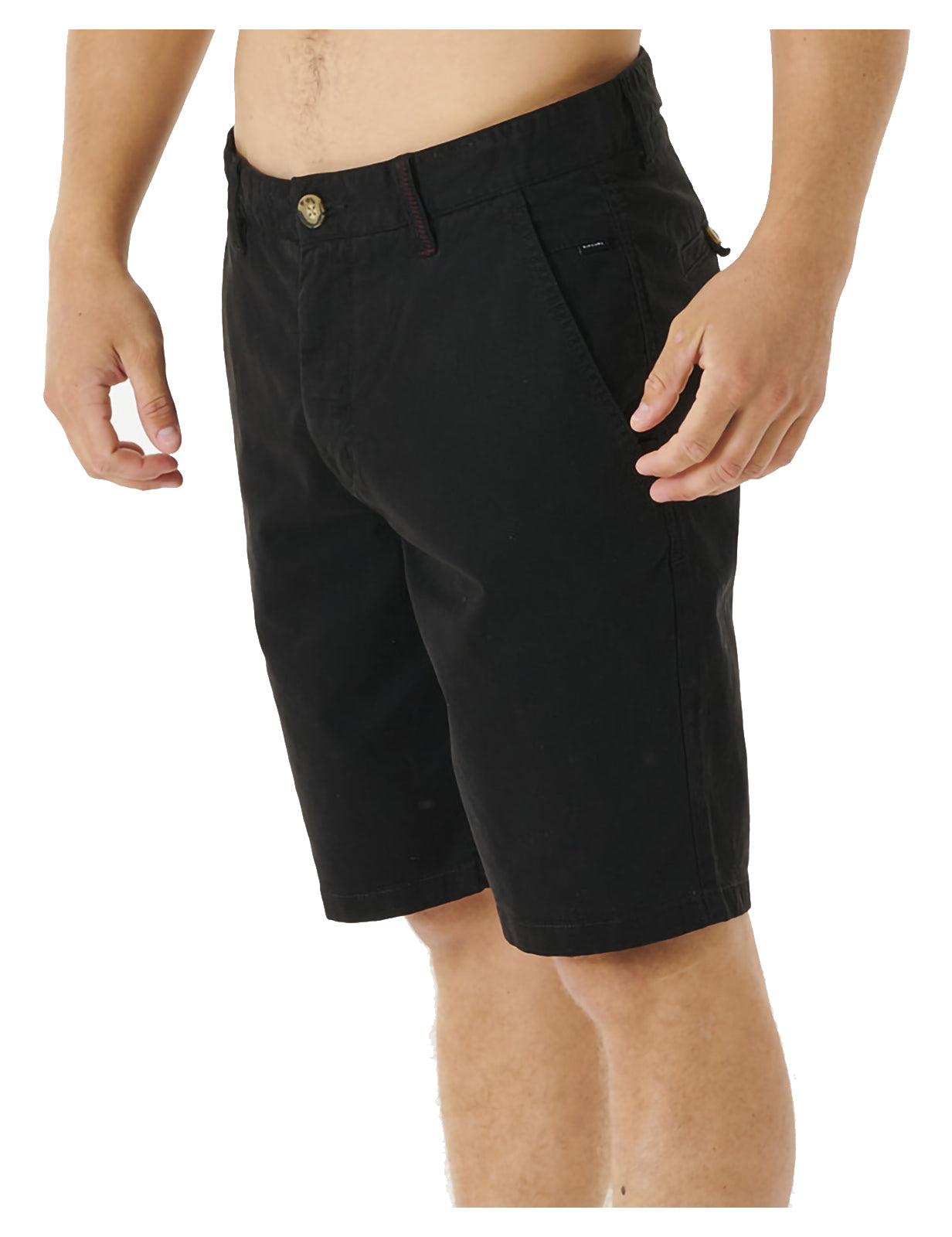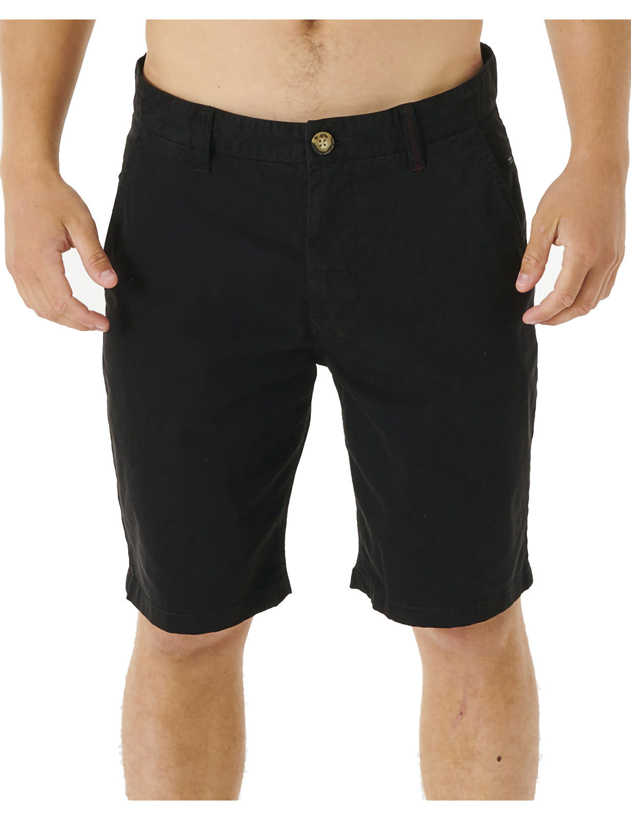 Rip Curl Travellers 20" outseam regular fit chino shorts in black features 4 pockets and button pocket as well as zip fly. Branding includes a Rip Curl woven label and Rip Curl woven patch. Made from 98% cotton and 2% elastane.