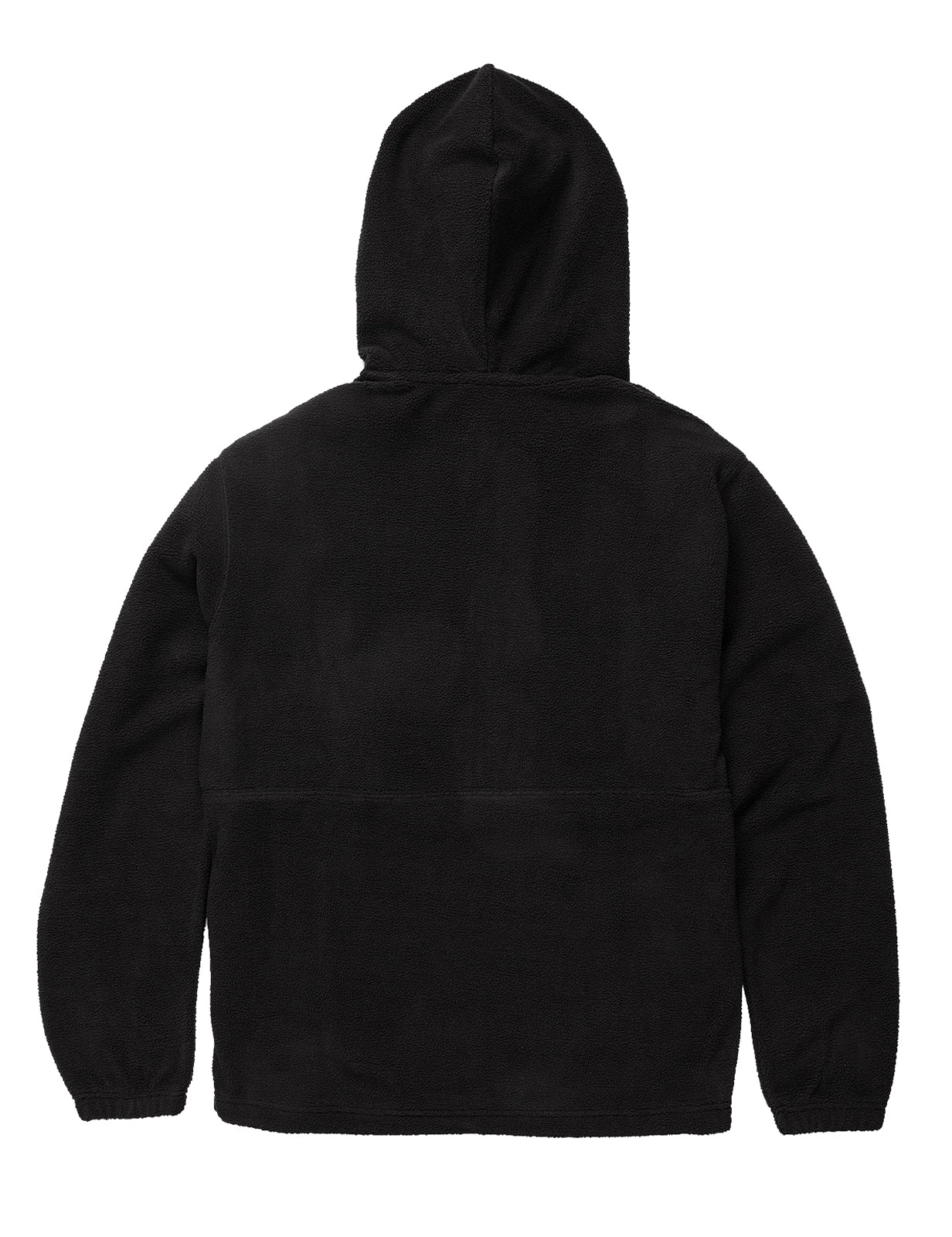 Volcom Unerstand Half Zip regular fit pullover hoody in black features a adjustable drawstring hood and chest pocket as well as side pockets. Branding includes a Volcom printed logo. Made with polar fleece. Made from 100% polyester.